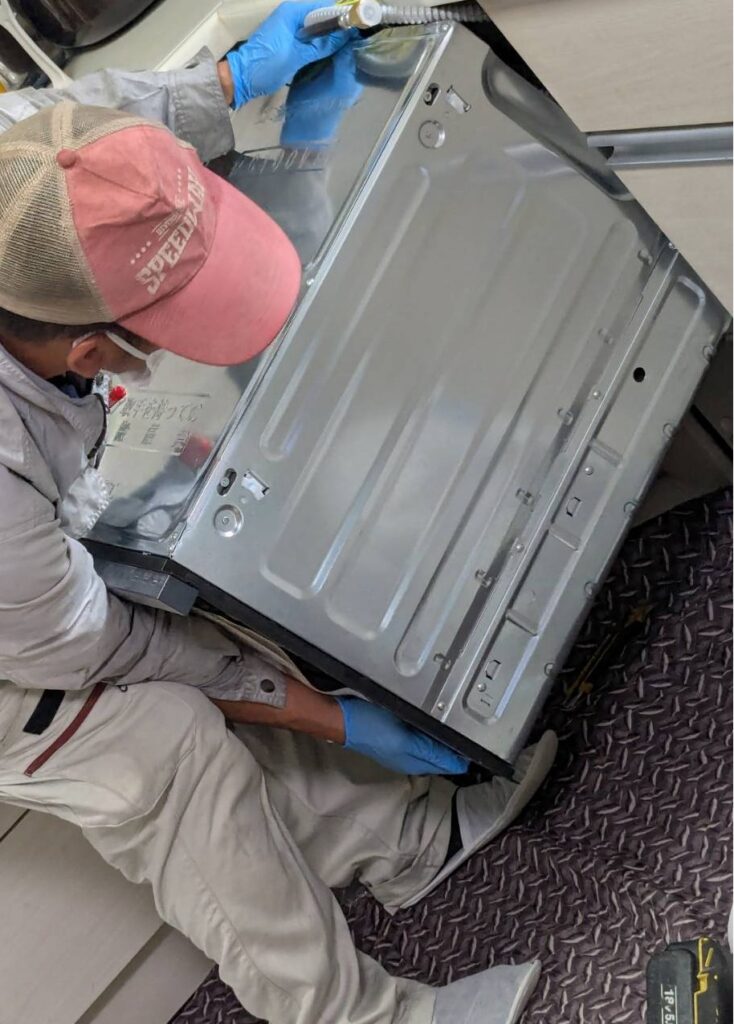 ②新しい食洗機を取付け。すごく重そう。
